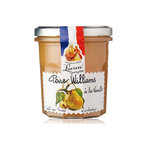 Ingredients: Williams pears* 45%, sugar, apples* 15%: Pectins, concentrated lemon juice, exhausted vanilla cloves 0.002% (non-UE origin), natural vanilla aroma 0.0002% (EU/non-UE origin).