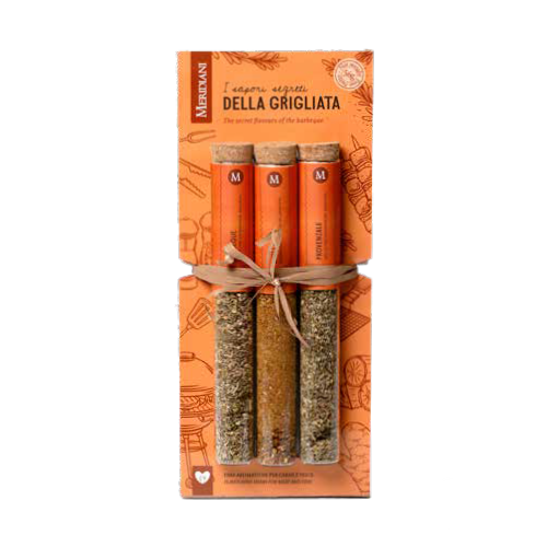 Ingredienti: rosmarino, basilico, lauro nobile, pepe nero, salvia, timo volgare, scorze di arancia amara, scorze di limone, bacche di ginepro, anice stellato, cannella regina, cardamomo, noce moscata, origano, chiodi di garofano.