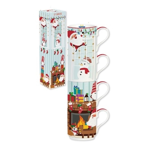 Set 4 Tazze Impilabili in Porcellana in Colour Box capacità 275 ml CHRISTMAS FRIENDS SANTA BY THE FIRE