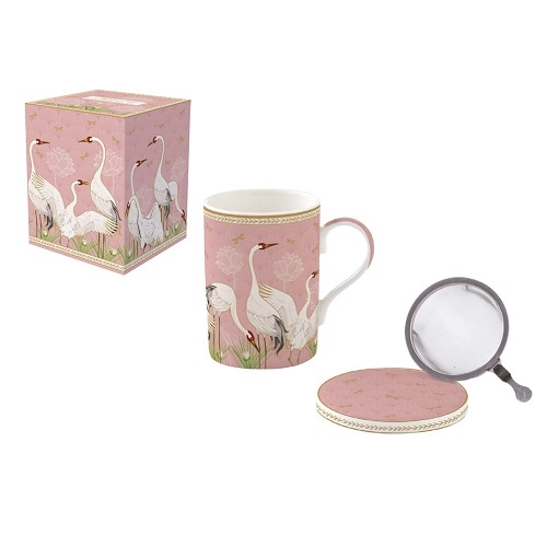 Mug e Sottobicchiere in Porcellana con Infusiera in Metallo in Colour Box capacità 350 ml DANCING HERONS