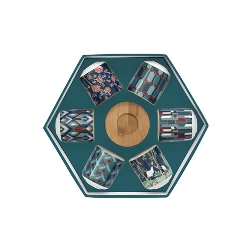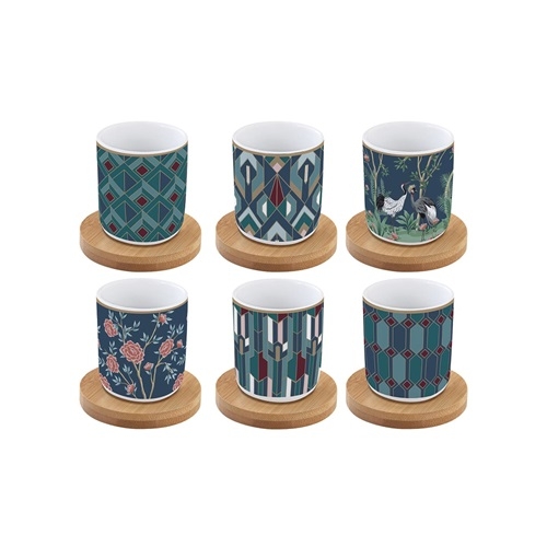 Set 6 Bicchierini Caffè in Porcellana con Piattino in Bambù in Scatola Regalo capacità 110 ml MANDALAY