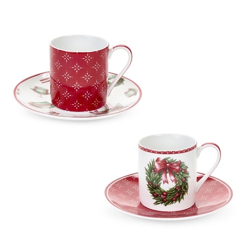 Storia di Natale Set 6 Tazzina con Piattino in Porcellana con Scatola 90 ml