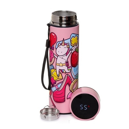Bottiglia Acciaio con Termometro Digitale Unicorno