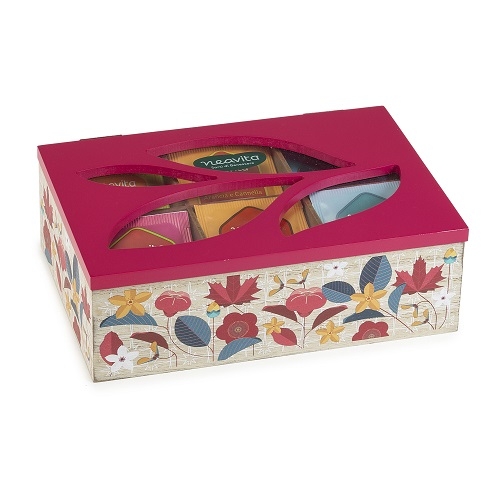 Contiene 5 filtri per tipo di: Mandarino e Zenzero, Rooibos Arancia e Cannella, Frutti di Bosco, Fragole e Ibisco, Mela e Vaniglia, Relax