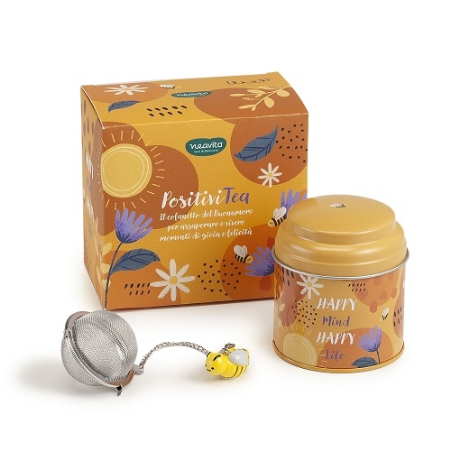 Contiene Tisana Bee Positive e filtro in acciaio con decoro ape