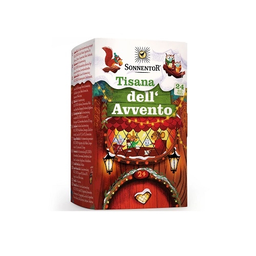 La Tisana dell'Avvento di Sonnentor è una dolcissima confezione natalizia con all'interno 24 miscele miste, a base di erbe, specie e fiori biologici. Un mix di gusti e profumi tipici del Natale, da gustare in ogni momento della giornata, con amici e parenti, mentre si aspetta il magico evento.