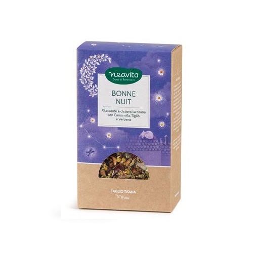 Pezzi di mela, fiori di camomilla, frutti di rosa canina, foglie di verbena odorosa, frutti di ribes nero, fiori di tiglio, aromi, petali di fiordaliso.