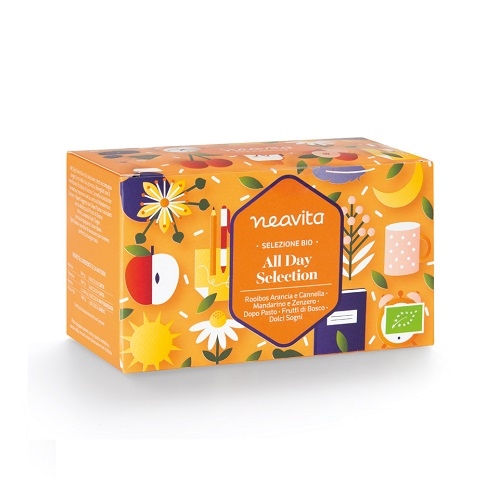 Contiene 4 bustine per tipo di: Rooibos Arancia e Cannella, Mandarino e Zenzero, Dopo Pasto, Frutti di Bosco, Dolci Sogni.