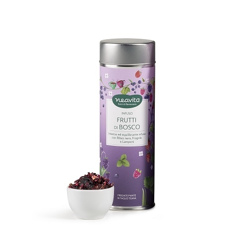 Bacche di sambuco, ribes nero, fragole, lamponi, fiori di karkadè, pezzi di mela, foglie di rovo.