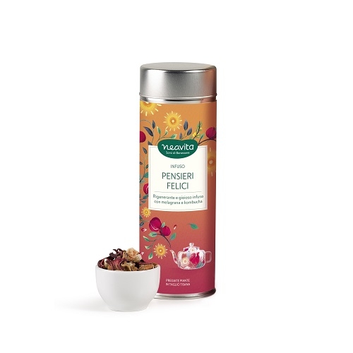 Pezzi di mela , fiori di ibisco, melissa , rooibos, lemongrass, aroma al Kombucha e Grenadine, acido citrico (acidificante), fiori di camomilla, petali di rosa, foglie di stevia, semi di melagrana, aromi naturali di melagrana, estratto di tè Kombucha.