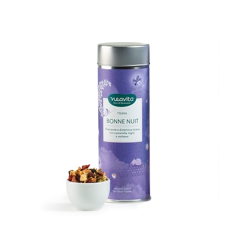 Pezzi di mela, fiori di camomilla, frutti di rosa canina, foglie di verbena odorosa, frutti di ribes nero, fiori di tiglio, aromi, petali di fiordaliso.
