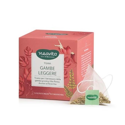 Tisana tonificante e benefica, ricca di proprietà per il benessere delle gambe. La Vite Rossa, il Gambo d’Ananas e il Meliloto sono degli ottimi alleati per favorire il microcircolo; il Finocchio è perfetto per sostenere il drenaggio dei liquidi del corpo e per regalare un gusto delicatamente pungente. Per lasciare andare le fatiche di una lunga giornata e sprigionare leggerezza.