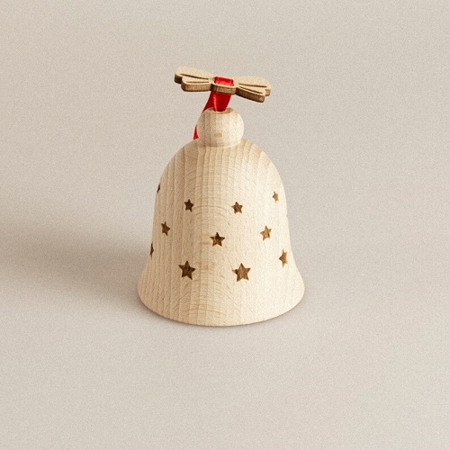 Addobbo campanella in legno di faggio per decorare l’albero di Natale.
