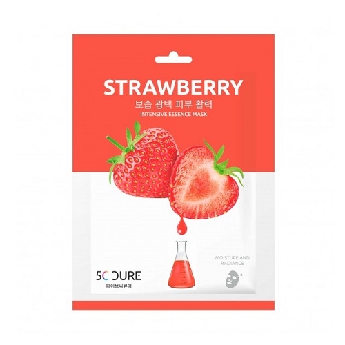 Maschera in tessuto con estratto di fragola, vitamine e antiossidanti per una pelle più elastica e rigenerata.