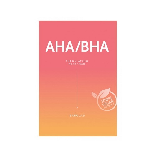 Maschera in tessuto biodegradabile con AHA/BHA che aiuta a idratare ed esfoliare la pelle.