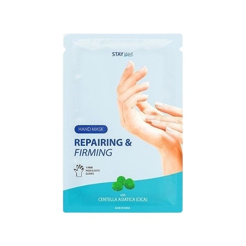 STAY Well Repairing & Firming Hand Mask con Cica è un paio di guanti-maschera indossabili che leniscono e rassodano le mani stanche. Il collagene e il peptide rafforzano la resilienza della pelle, mentre l'estratto di Centella Asiatica (Cica) aiuta a guarire e calmare la mano.