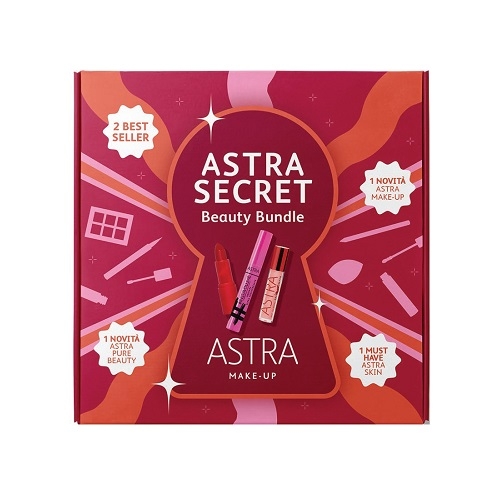 "Astra Secret Beauty Bundle" è un'esclusiva box che contiene: 2 best seller e 1 novità Astra Make-Up, 1 novità Astra Pure Beauty e 1 must-have Astra Skin.