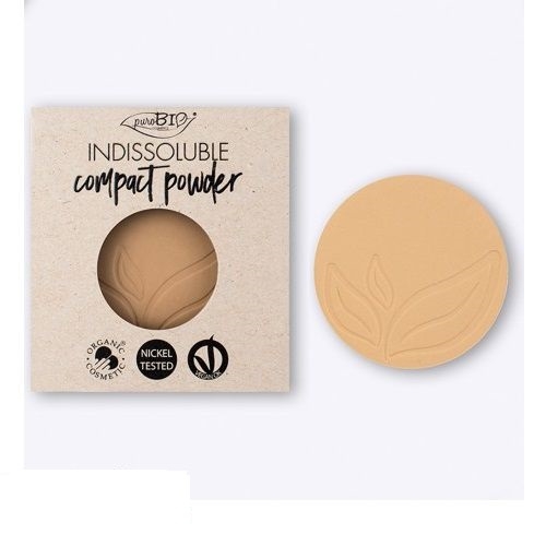 La cipria INDISSOLUBLE di PuroBio Cosmetics opacizza l’incarnato, grazie alla presenza di silica, amido di mais, polvere di riso.