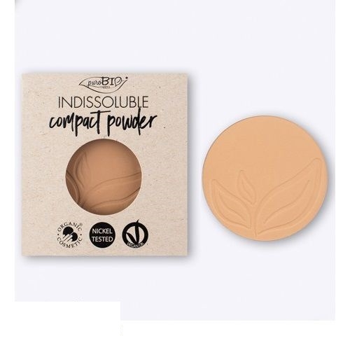 La cipria INDISSOLUBLE di PuroBio Cosmetics opacizza l’incarnato, grazie alla presenza di silica, amido di mais, polvere di riso.
