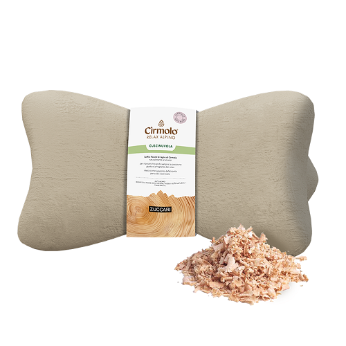 Soffice cuscino di pregiati fiocchi di legno di Cirmolo, naturalmente aromatici poiché ricchi di Olio essenziale di Cirmolo.