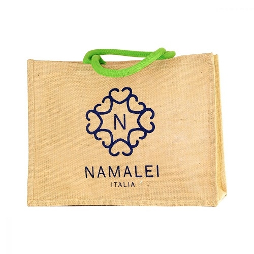 Questa borsa è fatta di juta, una delle fibre naturali più forti e una delle più sostenibili.