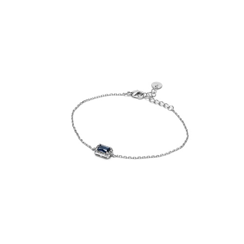 Bracciale sottile color argento con delicato zircone blu centrale dallo stile minimalista.