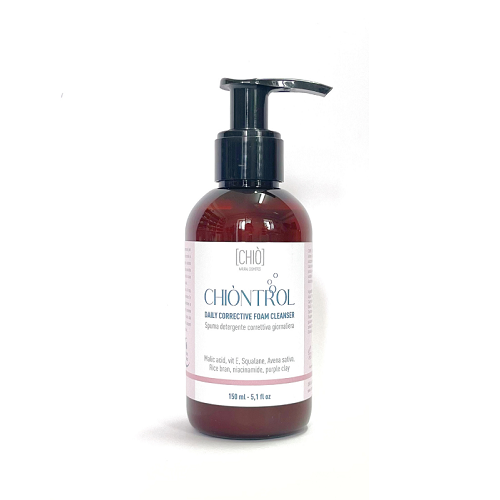 CHIÒNTROL by Chiò è una spuma detergente correttiva che effettua una delicata ma efficiente esfoliazione quotidiana, ideale per pelle sottile, con discromie, inspessita, matura, secca, mista, asfittica, segnata dal tempo.