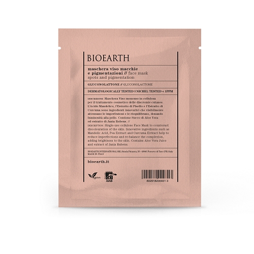 Maschera Viso monouso in cellulosa per il trattamento cosmetico delle discromie cutanee. L’Acido Mandelico, l’Estratto di Pisello e l’Estratto di Curcuma sono ingredienti innovativi che visibilmente attenuano le imperfezioni e le riequilibrano, donando luminosità alla pelle. Contiene Succo di Aloe Vera ed estratto di Jania Rubens.