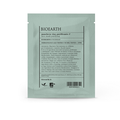 Maschera Viso monouso in cellulosa per il trattamento cosmetico di pelli impure. È ricca di ingredienti innovativi ad azione purificante e astringente come l’Estratto di Salvia e il Succo di Limone Femminello del Gargano, ingrediente a favore della Biodiversità. Particolarmente indicata per rimuovere cellule desquamanti e ridurre inestetismi cutanei. Contiene Succo di Aloe Vera ed estratto di Jania Rubens.