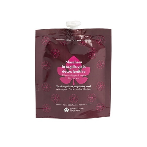 Una maschera all’argilla viola ricca di minerali micronutrienti e con un effetto detossinante per una pelle sana, elastica e levigata. L’argilla agisce in sinergia con le mucillagini di malva bio toscana, dalle proprietà lenitive e idratanti.
