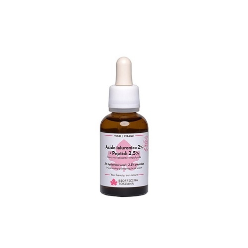 Un siero idratante-rimpolpante a base di Acido ialuronico purissimo a peso molecolare differenziato e Peptidi antiage. È arricchito da mucillaggini di malva bio toscana con proprietà lenitive-rinfrescanti. La concentrazione al 2% di Acido ialuronico grazie ai pesi molecolari differenziati idrata gli strati più profondi dell’epidermide e crea un morbido film protettivo su quelli più superficiali.