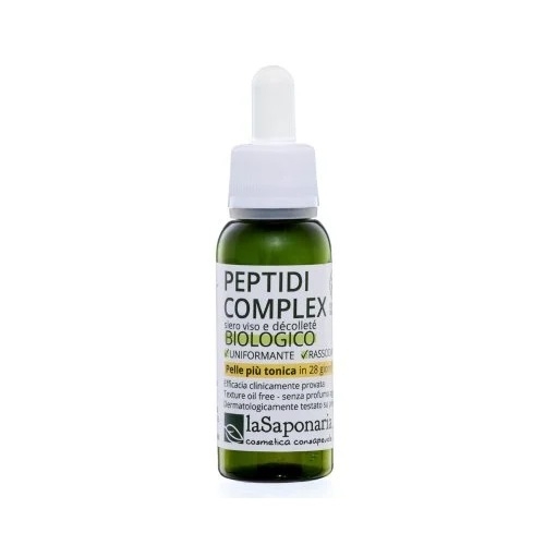 Peptidi Complex contiene un esapeptide (6 amminoacidi) di origine vegetale derivato da fermentazione e l’estratto – ricco in peptidi - di Sacha Inchi, una pianta perenne del Sud America, conosciuta e utilizzata per le sue straordinarie proprietà già dagli Inca. La combinazione di questi due ingredienti agisce in modo efficace e completo sul ringiovanimento del viso e del décolleté: migliorando il tono della pelle, contrastando il naturale cedimento cutaneo e combattendo i segni del tempo come rughe, perdita di elasticità e macchie. La pelle di viso e seno apparirà più uniforme, compatta e rassodata.